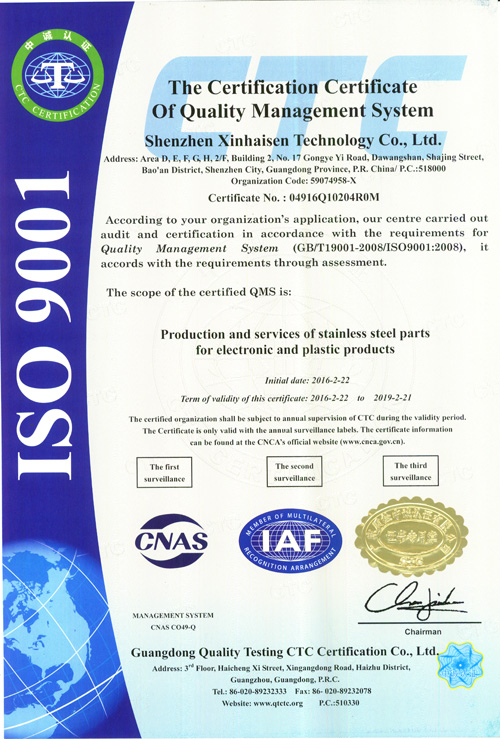 深圳市鑫海森科技有限公司成立于2006年,坐落于中國(guó)廣東省深圳市沙井鎮(zhèn),地理位置優(yōu)越,對(duì)于我司原物料采購(gòu)及協(xié)作加工有無法比擬的迅速性和高品質(zhì)性。 我司主要進(jìn)行精密五金件的加工,產(chǎn)品涉及的范圍相當(dāng)廣泛,涵蓋了通訊、聲學(xué)、光學(xué)、醫(yī)療、安防、機(jī)械、航空、陸運(yùn)工具、家電等等領(lǐng)域。本公司目前產(chǎn)能1000^2全自動(dòng)生產(chǎn)線6條。加工厚度從0.02mm-1.5mm產(chǎn)品的精度可以做到... 【查看詳情】